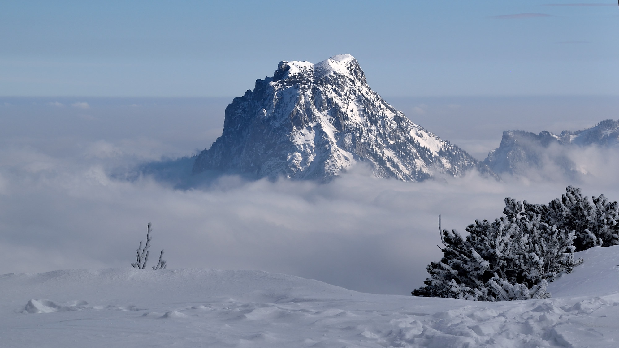 Fünf Alpinisten vom DAV-Pocking fuhren nach Ebensee am Traunsee und von dort mit der Seilbahn auf den Feuerkogel. Unweit der Bergstation ist das Feuerkogelhaus, hier wurde Quartier bezogen. Gleich danach ging es auf Tour. Das Hochplateau des Höllengebirges ist ein Eldorado für Schneeschuhwanderungen und Skitouren. Das Schneeschuh-Wegenetz ist mit Hinweisschildern und Schneestangen gut markiert und großteils gespurt. Gleich hinter dem Skigebiet ging es in Richtung Alberfeldkogel, 1709m der bereits nach einer guten Stunde erreicht war. Dort oben am Europakreuz erfreuten sich die fünf Pockinger an der herrlichen Aussicht. Der markante Bergstock des Traunsteins ragte durch die Wolkendecke und im Osten zeigten sich die Gipfel des Toten Gebirges. Dann trennten sich die Wege Die Skitourengeher suchten sich freie Hänge zur Abfahrt. Danach ging es ins Hintere Edltal und hinauf zur Hochschneid. Die Schneeschuhtreter stapften über den nächsten Höhenrücken und über einen unberührten Hang hinunter. Dann gleich wieder der nächste Gegenanstieg hinauf zum Feuerkogel. Nun ging es auch für die Schneeschuhgeher hinunter ins Edltal und weiter in Richtung Hochschneid. Es war ein stetiges Auf und Ab. Die Landschaft mit ihren unberührten Schneehängen und den vielen Schneeverwehungen glich einer Dünenlandschaft nur eben mit Schnee und nicht aus Sand. Der letzte Gipfel an diesem Tag war der Helmeskogel mit 1633m Höhe. Hier bot sich den Pockingern ein toller Blick hinunter auf den Traunsee den die Wolkendecke mittlerweile freigegeben hatte. Nun ging es zurück zum Feuerkogelhaus wo man einen gemütlichen Hüttenabend verbrachte.