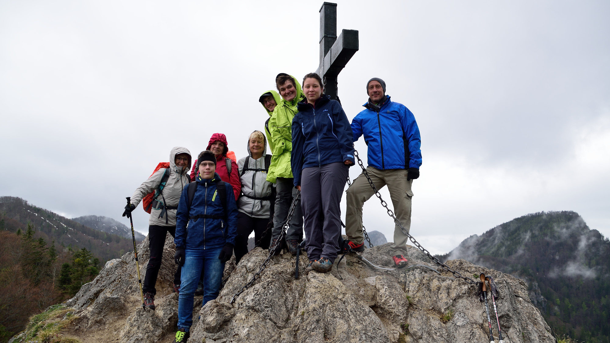 Junge und jung gebliebene Pocking Alpenvereins-Mitglieder trotzt unbeständigen Wetter.